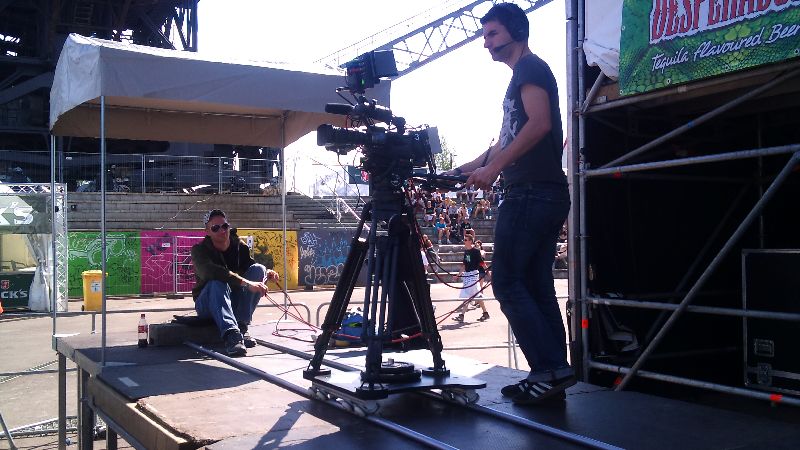 SR-P Fernsehen produzierte gemeinsam mit Record – Film aus Hamburg das diesjährige MELT Festival in einer aufwendigen Full HD TV Produktion für zahlreiche nationale und internationale Fernsehsender. Seit Jahren entwickelt sich die junge Produktionsmannschaft stätig weiter. Auf dieser Produktion kamen erstmals die neuen VESTEK Kameradollys zum Einsatz. Die neuen Dollys erlauben eine sehr sanfte Kamerafahrt. Auf der Bühne kam bei bestimmten Bands unser neues ABC G-FORCE Advanced Balance Systems zum Einsatz. Das Körpergestützte Kamerabalance System ist eine echte Bereicherung für unser Produktionsset. Im Zusammenspiel mit unserer neuen IDX Full HD Funkstrecke ergeben sich geniale Bilder von der Bühne. Auch haben wir das erste mal eine 40-fach Teleoptik an eine JVC GY HM 700 gebaut. Ein spezieller Adapter von 2/3 Zoll auf 1/3 Zoll verbindet die Optik mit der Kamera. Eine Stützbrücke fängt das Gewicht der Optik ab. Der Zoom lässt sich komplett fahren. Die Qualität ist genial. SR-P Fernsehen setzt hier im Preis – Leistungsverhältnis absolute Maßstäbe. Full HD TV Produktionen sind sehr teuer. Es sein denn, man produziert mit SR-P Fernsehen. Wir bieten einen Technikmix, aus LED Videotruck und TV Regie und Kameratechnik den man sich noch leisten kann.